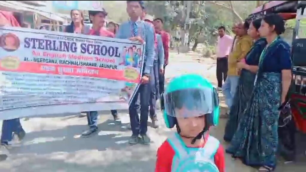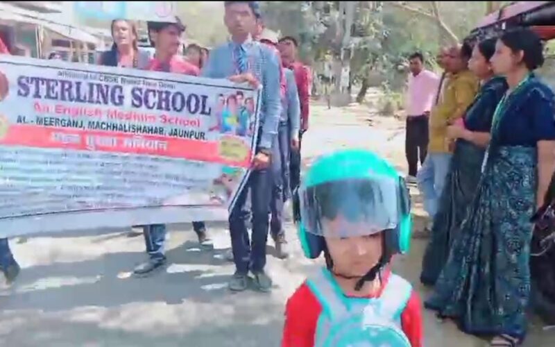Jaunpur news स्टर्लिंग स्कूल मीरगंज की पहल: नन्हें बच्चों ने निकाली सड़क सुरक्षा जागरूकता रैली