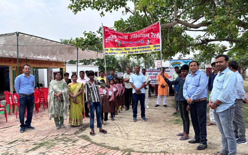 Jaunpur news स्कूल चलो अभियान की रैली निकालकर बच्चों का नामांकन कराकर स्कूल भेजने के लिए किया गया प्रेरित