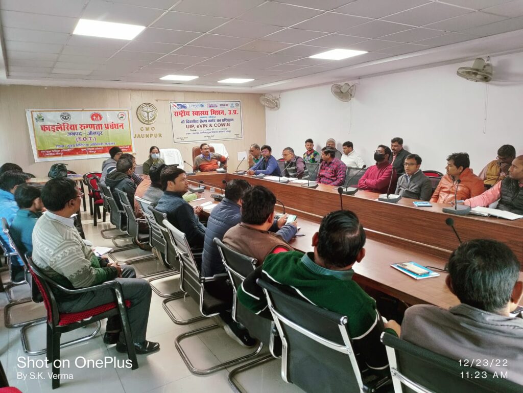 हाइड्रोसील के रोगियों के ऑपरेशन से दिलाई जा सकती है मुक्ति जौनपुर, 24 दिसम्बर 2022 । फाइलेरिया उन्मूलन के अंतर्गत मुख्य चिकित्सा अधिकारी कार्यालय सभागार में शुक्रवार को लिम्फोडिमा फाइलेरियासिस (एलएफ़) के रुग्णता प्रबंधन (मार्बिडिटी मैनेजमेंट) का दो दिवसीय प्रशिक्षण सम्पन्न हुआ । इसमें सामुदायिक व प्राथमिक स्वास्थ्य केन्द्रों के नोडल अधिकारियों तथा ब्लाक कार्यक्रम प्रबंधक (बीपीएम) को प्रशिक्षण दिया गया । सीएमओ डॉ लक्ष्मी सिंह के निर्देशन में आयोजित इस प्रशिक्षण सत्र की शुरुआत में प्रशिक्षणार्थियों को फाइलेरिया (हाथीपांव और हाइड्रोसील) के बारे में जानकारी दी गई । नोडल अधिकारी डॉ एसपी मिश्रा ने बताया कि हाथीपाँव फाइलेरिया का ही एक रूप है । इसकी उचित व नियमित देखभाल से रोगियों को आराम मिल सकता है । साथ ही बताया कि मास ड्रग एडमिनिस्ट्रेशन (एमडीए) अभियान के दौरान इस दौरान फाइलेरिया नियंत्रण अधिकारी बीपी सिंह तथा पाथ संस्था की जोनल कोआर्डिनेटर डॉ जसप्रीत कौर ने बताया कि जिन रोगियों में फाइलेरिया के लक्षण हैं और कई दिनों से इससे ग्रस्त हैं । उनका प्रबंधन किया जाना जरूरी है। हाइड्रोसील का ऑपरेशन कराकर उन्हें मुक्ति दिलाई जा सकती है। बताया कि जनपद में वर्ष 2021-22 के एमडीए अभियान से पूर्व घर-घर जाकर स्वास्थ्यकर्मियों ने हाइड्रोसील के रोगियों को खोजा था । इसमें कुल 1,552 रोगी चिह्नित किए गए थे । शासन की मंशानुसार ऐसे समस्त रोगियों का कैम्प लगाकर हाइड्रोसील का ऑपरेशन कराया जाए । जनपद में कुल चिह्नित रोगियों में से 757 हाइड्रोसील रोगियों का ऑपरेशन कराया जा चुका है । शेष का जनवरी में कैम्प लगाकर ऑपरेशन कराया जाएगा । इसी तरह से रुग्णता प्रबंधन के लिए हाथीपांव प्रभावित अंग की नियमित साफ-सफाई करके रोगियों को सूजन से दिलाने के संबंध में प्रशिक्षण दिया गया । बताया गया कि वर्ष 2021-22 के एमडीए अभियान के पूर्व जनपद में कुल 5,224 लिम्फोडिमा के रोगी चिह्नित किए गए थे। इनमें से 1,227 को रुग्णता प्रबंधन प्रशिक्षण तथा एमएमडीपी किट दी गई। शेष को जनवरी में सामुदायिक/प्राथमिक स्वास्थ्य केन्द्रों (सीएचसी/पीएचसी) तथा हेल्थ एंड वेलनेस केंद्रों पर कैम्प लगाकर रुग्णता प्रबंधन का प्रशिक्षण देने एवं किट देने के लिए प्रशिक्षित किया गया। जनवरी से पूर्व में चिह्नित हाइड्रोसील एवं लिम्फोडिमा के रोगियों के प्रबंधन का प्रशिक्षण एवं किट प्रदान करने का लक्ष्य रखा गया है । कैम्प में अधिकतम 10 रोगियों को प्रशिक्षण दिया जाएगा । यह प्रशिक्षण ट्रेनिंग ऑफ ट्रेनर्स (टीओटी) था । प्रशिक्षक संबन्धित सीएचसी/पीएचसी पर जाकर शेष कर्मचारियों को प्रशिक्षण देंगे एवं कार्यक्रम का क्रियान्वयन कराएंगे । बताया गया कि 10 फरवरी 2023 से एमड