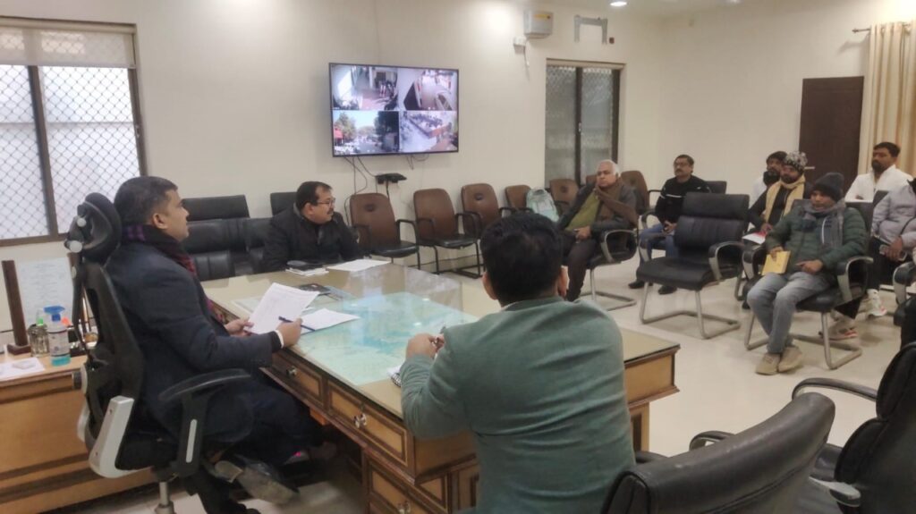 जिलाधिकारी मनीष कुमार वर्मा के द्वारा जनसुनवाई कक्ष में परिवहन ठेकेदारों के साथ बैठक