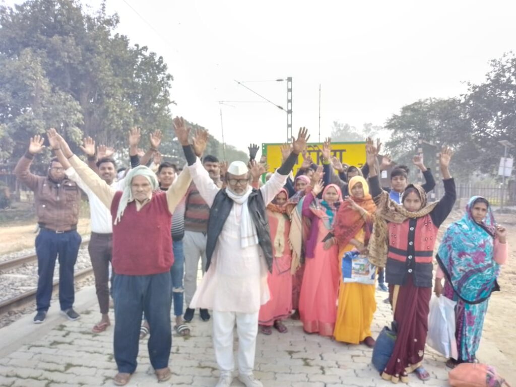 मीरगंज – हाल्ट स्टेशनों पर मूलभूत सुविधाओं की मांग को लेकर जज सिंह अन्ना और रेलयात्रियों का लगातार धरना प्रदर्शन जारी