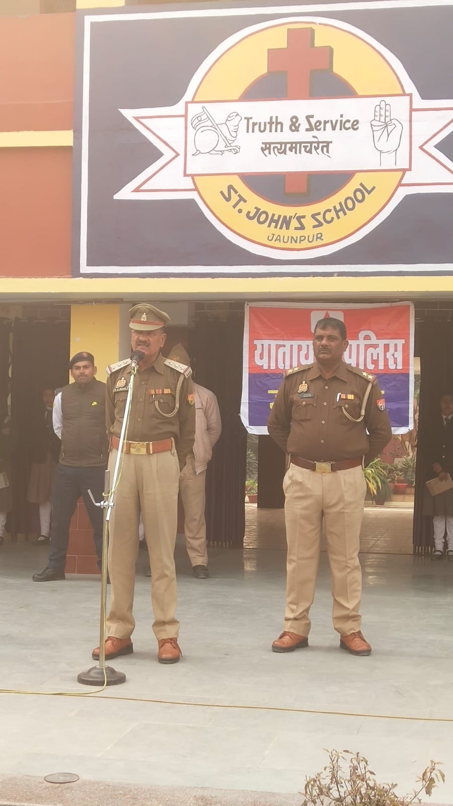 आज शासन के निर्देश के क्रम में सड़क सुरक्षा माह- 2023 के दृष्टिगत पुलिस उपमहानिरीक्षक/ वरिष्ठ पुलिस अधीक्षक जौनपुर महोदय के आदेशानुसार क्षेत्राधिकारी यातायात/नगर श्री कुलदीप कुमार गुप्ता के निर्देशन में सम्भागिय परिवहन से श्रीमती स्मिता बर्मा (पी0टी0ओ0प्रवर्तन), प्रभारी निरीक्षक यातायात श्री जी0डी0 शुक्ला व समस्त उप निरीक्षक यातायात की उपस्थिति में सेन्ट जॉन्स स्कूल में पहुँचकर बच्चों को यातायात नियमों की सपथ दिलायी गयी और यातायात नियमों की जानकारी,जागरुकता,उपयोगिता, और आवश्यकता पर प्रकाश डाला गया । और शहर के वाजीदपुर, जेसिज, पालिटेक्निक, ओलंदगंज, पचहटिया, सिहींपुर, बदलापुर पड़ाव, आदि स्थानों पर नो पार्किंग, दोपहिया पर तीन सवारी, वाहनों में हूटर, सायरन व प्रेशर हॉर्न के विरुद्ध चेकिंग अभियान चलाकर प्रवर्तन की कार्यवाही किया गया साथ ही साथ लोगों को यातायात नियमों के बारे में जागरुक भी किया गया ।