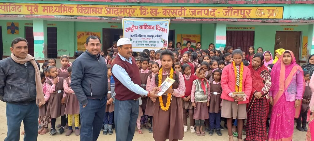 धूमधाम से मनाया राष्ट्रीय बालिका दिवस कंपोजिट विद्यालय आदमपुर, बरसठी, जौनपर व सरजू प्रसाद शैक्षिक, सामाजिक एवं सांस्कृतिक संस्था जज कॉलोनी द्वारा विविध कार्यक्रम कार्यक्रम आयोजित किया गया। जिसमें मुख्य अतिथि प्रधानध्यापक सुबाष सरोज ने कहा कि राष्ट्रीय बालिका दिवस का आयोजन लड़कियों को सशक्त और आत्मनिर्भर बनाता है ताकि लड़कियां समाज के विभिन्न क्षेत्रों में बराबर की सहभागिता कर सकें। किसी भी तरह की लैंगिक असमानता व भेदभाव न हो सके।समाज के विकास में बालिकाओं का महत्वपूर्ण भूमिका है जो परिवार समाज और देश को स्वस्थ रखने की दिशा में महत्वपूर्ण योगदान देती है।कार्यक्रम की अध्यक्षता करते हुए विद्यालय प्रबंध समिति के अध्यक्ष महेश प्रजापति ने कहा कि हमारा समाज बालिकाओं को लेकर पूर्णरूपेण सचेष्ट और जागरूक रहें यही उद्देश्य है इस कार्यक्रम का। बेटी बचाओ बेटी पढ़ाओ, कन्या सुमंगला योजना, बालिका शिक्षा, बालिका लिंगानुपात, बाल विवाह और उसके कानूनी अधिकार, बालिकाओं की देखभाल चिकित्सा और सम्मान, कन्या भ्रूण हत्या पर पूरी तरह रोक लगनी चाहिए, पीसीपीएनडीटी एक्ट पूर्व गर्भाधान एवं प्रसव पूर्व निदान तकनीक अधिनियम 1994 के तहत परीक्षण कराना गैरकानूनी है पर विस्तार से विचार रखा।