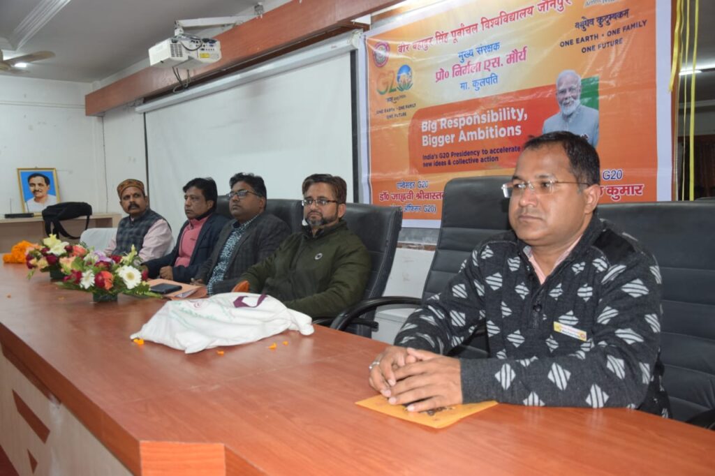 जौनपुर। वीर बहादुर सिंह पूर्वांचल विश्वविद्यालय के संकाय भवन के संगोष्ठी हाल में जी-20 के परिपेक्ष्य में डेमोक्रेसी एवं सतत विकास पर संगोष्ठी का आयोजन हुआ। मुख्य वक्ता प्रो0 मुराद अली ने पर्यावरण का बचाव करने के लिए विद्याथिर्यों को जागरूक किया और अन्य देशों के उदाहरण देकर सतत विकास की परिकल्पना को बताया। उन्होने कहा कि भारत लोकतंत्र का एक मुख्य उदाहरण है। संगोष्ठी की अध्यक्षता करते हुए प्रो0 बी.डी.शर्मा ने कहा कि विद्यार्थियों को जी-20 एक मंच प्रदान करता है जिससे वह अपनी प्रतिभाओं में निखार ला सके।