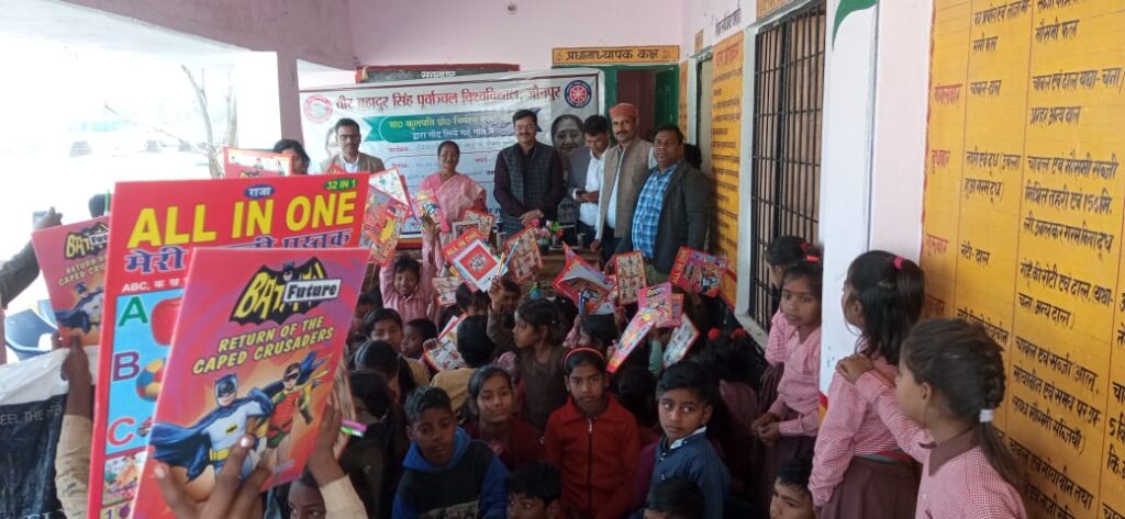 कुलाधिपति के निर्देश पर विश्वविद्यालय द्वारा गोद लिए गए देवकली गाँव के बल्ली का पूरा,आंगनबाड़ी केंद्र पर कुलपति प्रो. निर्मला एस.मौर्य ने 100 बच्चों को शिक्षण सामाग्री एवं मिष्ठान का वितरण किया।अपने संबोधन में कुलपति ने बच्चों को खूब मन लगाकर पढ़ने के लिए प्रेरित किया।कुलसचिव महेंद्र कुमार ने बच्चों को संबोधित करते हुए उन्हें बड़ा होकर नेक इंसान बनने का आह्वान किया।