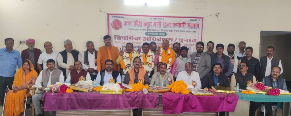आज पूर्व निर्धारित कार्यक्रम के अनुसार कृषि भवन सभागार में उत्तर प्रदेश चतुर्थ श्रेणी राज्य कर्मचारी महासंघ जौनपुर का द्विवार्षिक अधिवेशन/ चुनाव डॉ प्रदीप कुमार सिंह जिला अध्यक्ष राज्य कर्मचारी संयुक्त परिषद जौनपुर की अध्यक्षता में संपन्न हुआ। अधिवेशन के मुख्य अतिथि प्रांतीय महामंत्री रामनरेश यादव एवं धीरेंद्र बहादुर सिंह तथा चुनाव अधिकारी मंसाराम प्रदेश उपाध्यक्ष उत्तर प्रदेश चतुर्थ श्रेणी राज्य कर्मचारी महासंघ रहे। अधिवेशन में जनपद कार्यकारिणी के सभी पदाधिकारियों/ कर्मचारियों सहित विभिन्न संगठनों के विकास खंड एवं तहसील स्तरीय पदाधिकारी भी उपस्थित रहे। जिला अध्यक्ष द्वारा पूर्व कार्यकारिणी भंग करने के पश्चात सदन की सर्वसम्मति से अजय कुमार सिंह को दूसरी बार पुनः जिला अध्यक्ष,ओंकार सिंह को जिला मंत्री तथा अजय लाल मौर्य को जिला कोषाध्यक्ष निर्वाचित घोषित किया गया। प्रदेश महामंत्री द्वारा नवनिर्वाचित पदाधिकारियों को पद एवं गोपनीयता की शपथ दिलायी गयी तथा एक माह के अंदर जिला कार्यकारिणी का विस्तार करते हुए प्रांतीय नेतृत्व को अवगत कराने का निर्देश दिया गया। बैठक की अध्यक्षता करते हुए राज्य कर्मचारी संयुक्त परिषद अध्यक्ष डॉ प्रदीप सिंह ने उपस्थित सभी संगठनों के पदाधिकारियों से इस संघर्ष वर्ष में बिना किसी भेदभाव, गुटबाजी एवं निमंत्रण का इंतजार किए स्वप्रेरित होकर पुरानी पेंशन योजना की बहाली सहित विभिन्न कर्मचारी हितों के मुद्दों पर एक साथ मिलकर संघर्ष करने का आह्वान किया। अधिवेशन में नियोजन एवं कर्णिक संघ के जिला अध्यक्ष सुजीत कुमार सिंह, राजीव कुमार रोशन,ग्राम विकास अधिकारी एसोसिएशन के जिला मंत्री रामकृष्ण पाल, परिषद के संगठन मंत्री शरद पटेल,पीडब्ल्यूडी से कल्लू कामरेड, कलेक्ट्रेट कर्मचारी संघ से ओमप्रकाश सिंह,सफाई कर्मचारी संघ से जिला अध्यक्ष अमर बहादुर यादव, संजय कुमार चौधरी, सरताज सिंह,केसरी प्रसाद गौतम,प्रेमलाल गौतम, रामलाल पाल,सत्य प्रकाश सिंह,अजीत कुमार, चंद्रप्रकाश सिंह,प्रमोद शर्मा, मनीष यादव, शिवहरि सिंह, लालमणि पाल, दिनेश यादव, रीना सिंह,सविता दुबे,अजय राजभर,तेज बहादुर,हवलदार,संजय कुमार मौर्य,अनिल कुमार, चंद्रशेखर,विपिन यादव, अभय यादव आदि सैकड़ों पदाधिकारी कर्मचारी उपस्थित रहे। कार्यक्रम का संचालन तेज बहादुर एवं केसरी प्रसाद गौतम ने संयुक्त रूप से किया।