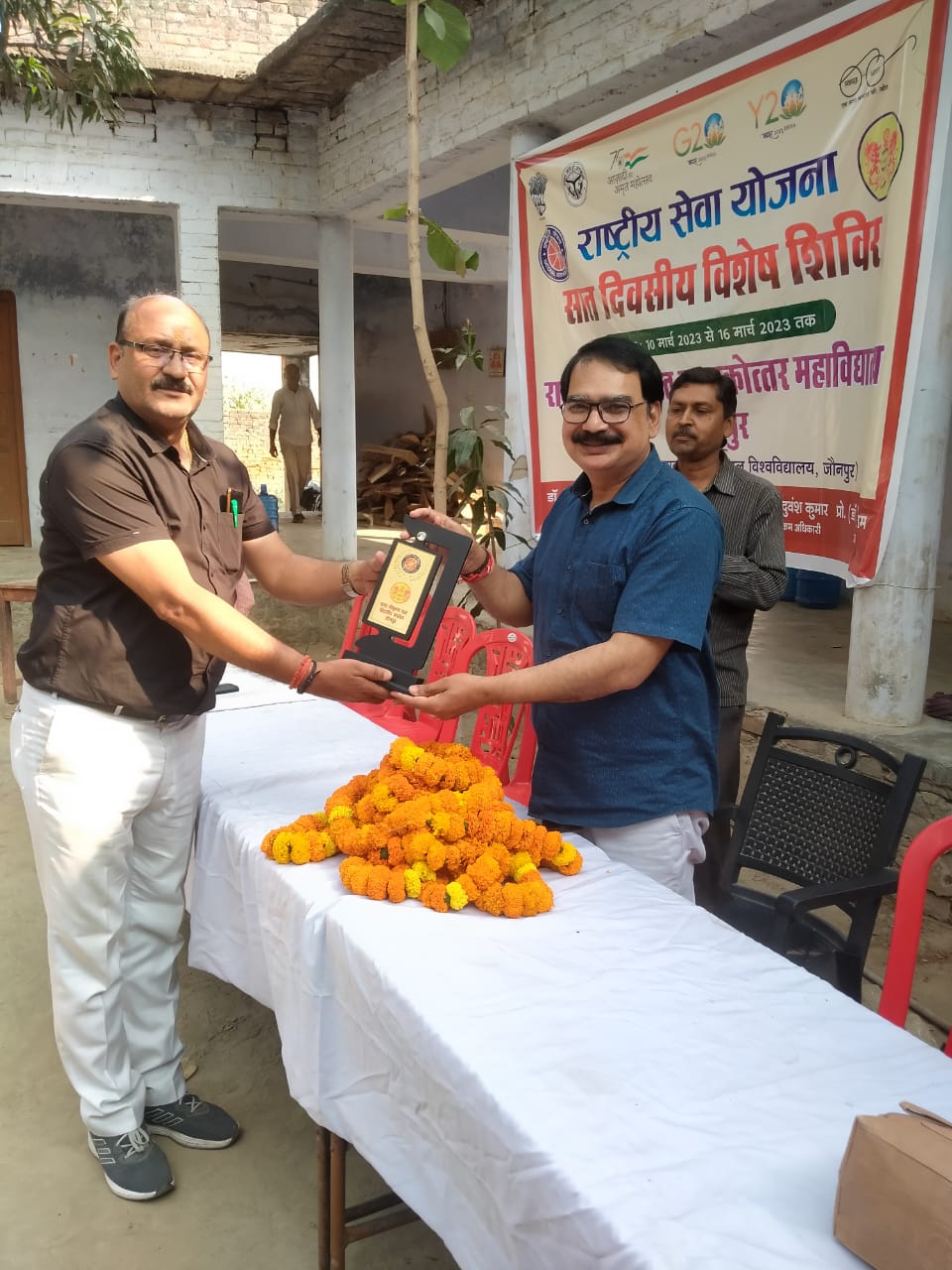 इसके पूर्व वरिष्ठ कार्यक्रम अधिकारी डॉ० विजय प्रताप तिवारी एवं डॉ० मधु पाठक द्वारा मुख्य अतिथि एवं विशिष्ट अतिथि को माल्यार्पण कर स्मृति चिन्ह व अंगवस्त्रम प्रदान कर स्वागत किया गया।
