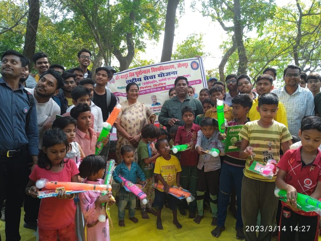 जौनपुर। वीर बहादुर सिंह पूर्वांचल विश्वविद्यालय, परिसर जौनपुर के राष्ट्रीय सेवा योजना विशेष शिविर का मंगलवार को कुलपति प्रो. निर्मला एस. मौर्य ने निरीक्षण किया। विश्वविद्यालय परिसर इकाई द्वारा मतदाता जागरूकता अभियान एवं एड्स जागरूकता अभियान की रैली निकालकर विश्वविद्यालय द्वारा गोद लिए गए चारों गांव जासोपुर, कुकडीपुर, सुल्तानपुर और देवकली गांव में लोगों को मतदान एवं एड्स के प्रति अपनी जिम्मेदारी के लिए जागरूक किया गया। चारों गांव के आंगनबाड़ी केंद्रों के 40 बच्चों को कॉपी, किताब, पेंसिल खेलकूद सामग्री आदि कुलपति द्वारा प्रदान की गई। साथ ही कुलपति द्वारा स्वयंसेवक एवं सेविकाओं को संबोधित करते हुए कहा गया कि सामाजिकता और समरसता के तालमेल से ही व्यक्तित्व का पूर्ण रूप से विकास होता है आज इसकी झलक स्वयंसेवक एवं सेविकाओं द्वारा देखने को मुझे देवकली ग्रामीण क्षेत्र के पोखरे पर मिलीं l स्वयंसेवक एवं सेविकाओं द्वारा शिविर में बनाए गए भोजन का भी आनंद लिया l शिविर की रूपरेखा डॉ अजय मौर्या द्वारा प्रस्तुत किया गया और कार्यक्रम एवं रैली का संचालन वरिष्ठ कार्यक्रम अधिकारी डॉ विनय वर्मा द्वारा किया गया। धन्यवाद ज्ञापन कार्यक्रम अधिकारी डॉ विशाल यादव द्वारा ज्ञापित किया गया l रैली का संचालन राष्ट्रीय सेवा योजना विश्वविद्यालय परिसर के प्रभारी कयामुद्दीन द्वारा हरी झंडी दिखाकर किया गया l इस अवसर पर डा. लक्ष्मी प्रसाद मौर्य, मैलाश, मन्ना यादव, मनोज, ओम प्रकाश यादव, सर्वेश यादव कार्यक्रम अधिकारी डॉ शशिकांत यादव, स्वयंसेवक विवेक पांडे आलोक मौर्य,अरमान शैख़, अल्तमश खान, सोशलिस्ट हस्सान आजमी, राज सिंह, आलोक यादव, सुभम साहू, उत्कर्ष त्रिपाठी, आकाश उपाध्याय, प्रशांत यादव आदि उपस्थित रहे।