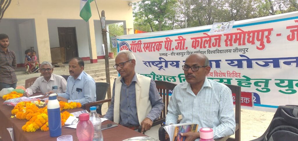 राष्ट्रीय सेवा योजना के विशेष शिविर का समापन समारोह 16 मार्च को गांधी स्मारक पीजी कॉलेज समोधपुर स्थित श्री सर्वेश्वरी समूह संस्थान परिसर में आयोजित हुआ।समापन समारोह का शुभारंभ स्काउट गाइड के जिला मुख्यायुक्त एवं श्री गांधी स्मारक इंटर कॉलेज समोधपुर के पूर्व प्रधानाचार्य डा.रणजीत सिंह ने मां सरस्वती के चित्र पर माल्यार्पण एवं पूजा अर्चना करके बतौर मुख्य अतिथि के रूप में किया। सर्वप्रथम स्मृति दुबे,प्रगति मिश्रा व अंतिमा गुप्ता द्वारा सरस्वती वंदना व स्वागत गीत खुशी पांडेय, प्रीति सिंह प्रीति तथा गुंजा ने प्रस्तुत किया। मुख्य अतिथि का माल्यार्पण करके स्वागत किया गया।समारोह को संबोधित करते हुए उन्होंने कहा कि राष्ट्रीय सेवा योजना का मुख्य उद्देश्य देश व समाज के प्रति सेवा भाव जागृत करना है।आधुनिक पीढ़ियों में सेवा भावना के प्रति उदासीनता पर चिंता जताई।