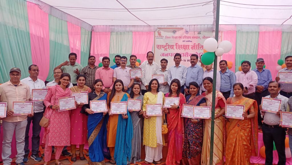 जिला शिक्षा एवं प्रशिक्षण संस्थान, जौनपुर के परिसर में राष्ट्रीय शिक्षा नीति 2020 विषय पर सेमिनार का आयोजन किया गया| प्राचार्य श्री राकेश सिंह एवं मंचासीन के कर कमलों से दीप प्रज्ज्वलन एवं माँ सरस्वती के प्रतिमा पर माल्यार्पण कर कार्यक्रम का शुभारम्भ हुआ| प्रतियोगिता में जिले के सभी विकासखण्ड के शिक्षकों ने प्रतिभाग किये ,जिसमें सभी प्रतिभागियों ने NEP 2020 पर अपना विचार प्रस्तुत किए | इस सेमिनार में मुख्य अतिथि के रूप में प्रो०अजय कुमार दुबे(विभागाध्यक्ष टी०डी०कॉलेज जौनपुर )ने अपने विचार प्रस्तुत करते हुए कहा कि नई शिक्षा नीति हमारे लिए महत्वपूर्ण है क्योकि कि इसमें व्यावसायिक शिक्षा के साथ -साथ व्यवहारिक शिक्षा पर विशेष जोर दिया गया हैं |मुख्यवक्ता के रूप में प्रो०धीरेन्द कुमार पटेल(विभागाध्यक्ष- हिंदी) ,डॉ०संजय कुमार यादव(असि०प्रो० प्राचीन इतिहास ), डॉ०कर्मचन्द(असि०प्रो० राजनीति विज्ञानं ) ,डॉ०चन्द्र प्रकाश शाही(असि०प्रो०अग्रेजी ) , श्री उदयभान कुशवाहा (BEOबक्शा) सभी ने NEP 2020 के विभिन प्रकरणों पर अपने सारगर्भित विचार प्रस्तुत किए |इन सभी को प्राचार्य द्वारा शाल, मोमेंटो , बुके एवं प्रशस्ति पत्र देकर सम्मानित किया गया शेष प्रतिभागियों को प्रमाण पत्र के साथ सम्मानित किया गया|