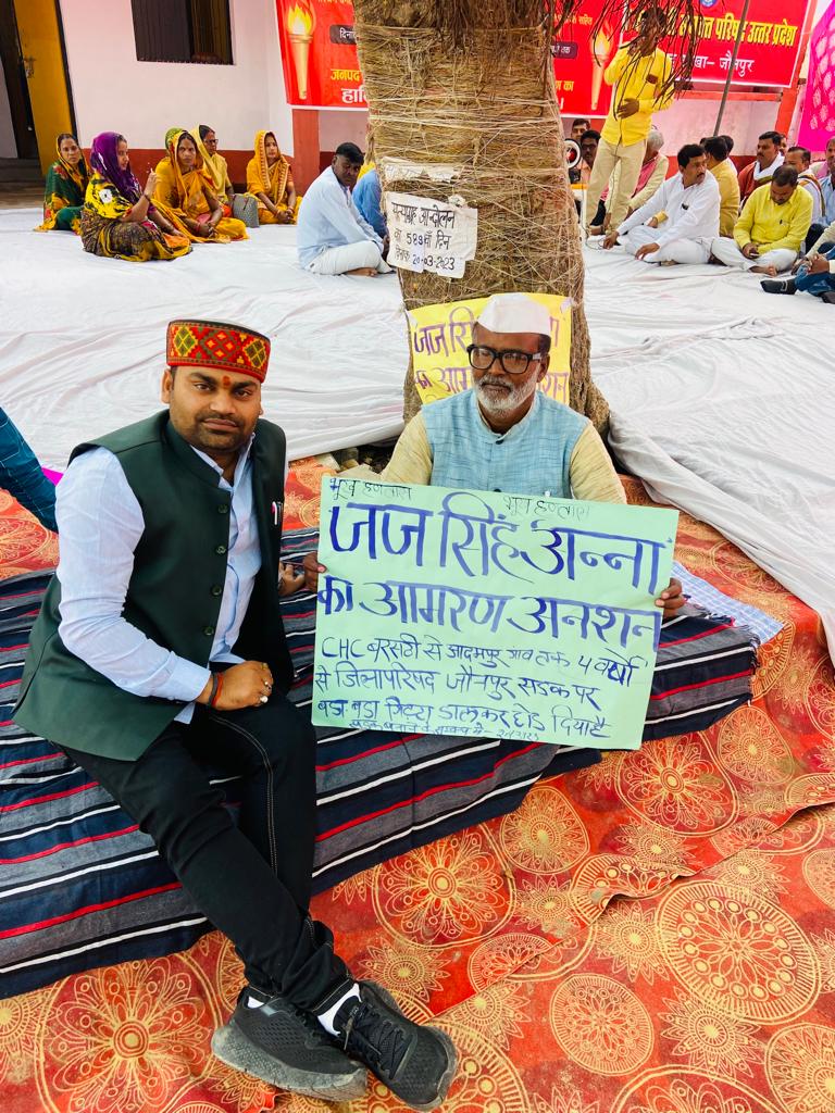 जौनपुर कलेक्ट्रेट परिसर में समाजसेवी जज सिंह अन्ना ने आज दूसरे दिन भी भूख हड़ताल,आमरण अनशन बिना अन्न, जल के जारी रखा है अन्ना का गला सूख चुका है मामला है बरसठी स्वास्थ्य केंद्र से आदमपुर गांव तक 2 किलोमीटर सड़क 4 वर्षों से जिला परिषद जौनपुर के ठेकेदार रत्नाकर सिंह ने बड़ा वाला गिट्टा डाल करके छोड़ दिया है लेकिन अभी तक इस सड़क को पिच रोड नहीं कर पाए हैं और एंबुलेंस सहित मरीज आने जाने के लिए बहुत बड़ी दिक्कत का सामना करना पड़ रहा है डॉक्टर लावी भी बहुत परेशान है और अस्पताल का रास्ता अवरूद्ध है । जिला परिषद जौनपुर के कर्मचारी अधिकारियों से शिकायत करने पर 4 वर्षों से एक ही शब्द मिल रहा है कि 1 महीने बाद सड़क बना दी जाएगी लेकिन जिला परिषद के अधिकारी कर्मचारी ठेकेदार और जिलाधिकारी जौनपुर खुद इस समस्या का समाधान नहीं कर पाए हैं इसलिए जज सिंह अन्ना करो या मरो पर उतरे हैं अपने अन्तिम दम तक अब CHCबरसठी का रास्ता बहाल करके ही सांस लेंगे ।