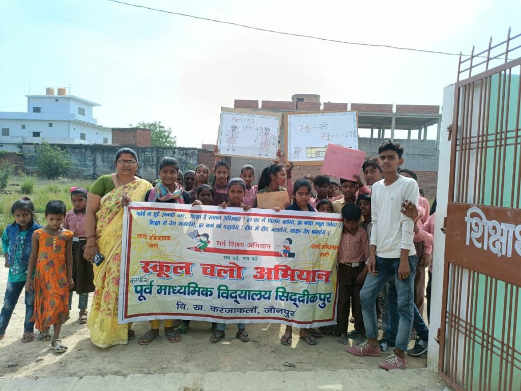 सर्व शिक्षा अभियान के तहत कंपोजिट विद्यालय सिद्धिकपुर के बच्चों ने स्कूल चलो अभियान रैली निकाली
