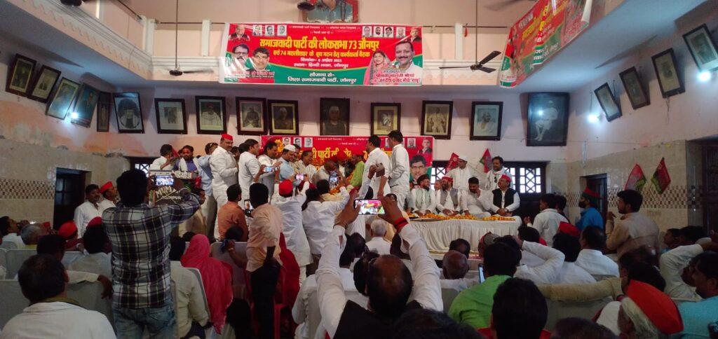 समाजवादी पार्टी की लोकसभा सदर एवं मछली शहर के बूथ कमेटी के गठन एवं सुझाव हेतु हिंदी भवन में कार्यकर्ता बैठक