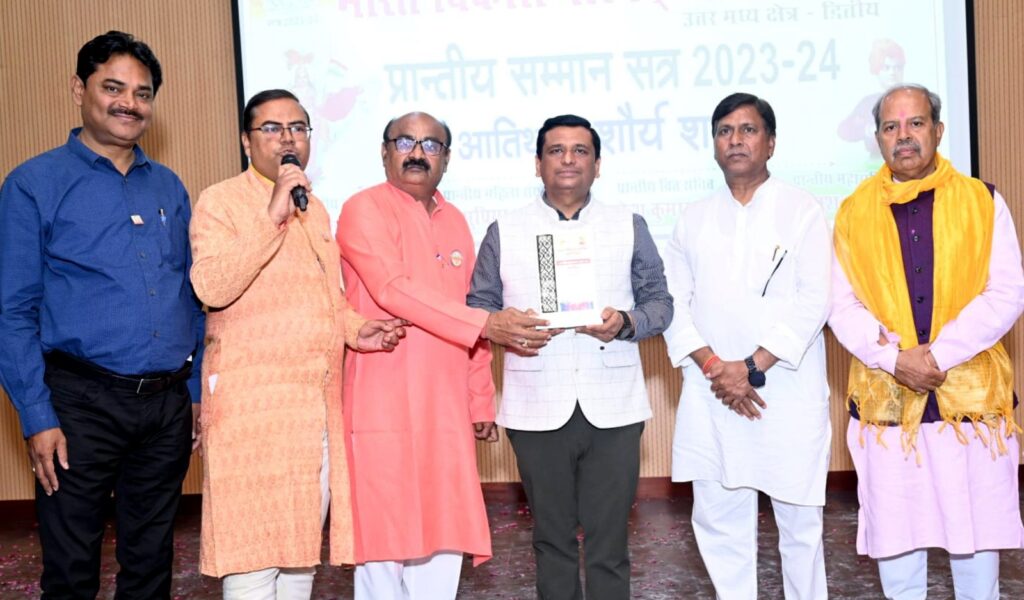 जौनपुर। भारत विकास परिषद काशी प्रान्त द्वारा आयोजित काशी हिन्दू विश्वविद्यालय के केएन उडप्पा सभागार में वर्ष भर किये गये कार्यों के लिये प्रान्तीय आभार के कार्यक्रम में नवगठित शाखा भारत विकास परिषद शौर्य के संस्थापक अध्यक्ष डा. सन्दीप पाण्डेय को सर्वश्रेष्ठ अध्यक्ष का पुरस्कार मिला। इसके अतिरिक्त शौर्य शाखा को श्रेष्ठ शाखा का सम्मान मिला। वर्ष भर किये गये कार्यक्रमों में स्वामी विवेकानन्द जयन्ती, रक्तदान तथा भारत को जानो कार्यक्रम को सर्वश्रेष्ठ कार्यक्रम का पुरस्कार मिला। इसके अतिरिक्त पदाधिकारियों में डा. आनन्द प्रकाश, ज्योति श्रीवास्तव, रंजीत सिंह सोनू भी सम्मानित किये गये। प्रान्त की सभी शाखाओं की उपस्थिति में डा. सन्दीप पाण्डेय को राष्ट्रीय उपाध्यक्ष सम्पर्क ब्रह्मानन्द पेशवानी, क्षेत्रीय महासचिव नवीन श्रीवास्तव, क्षेत्रीय संगठन सचिव प्रमोद राम त्रिपाठी, प्रान्तीय अध्यक्ष प्रवीण पटेल तथा प्रान्तीय महासचिव रवि जायसवाल द्वारा यह पुरस्कार दिये गये। सभी पदाधिकारियों ने मात्र 6 महीने में शौर्य द्वारा किये गये कार्यक्रमों की अत्यधिक सराहना की। इस कार्यक्रम में जिला समन्वयक नीरज श्रीवास्तव, राजेश कुमार, प्रशान्त सिंह लकी, आनन्द अस्थाना, सुजीत यादव, प्रमोद सैनी आदि उपस्थित रहे। अन्त में डा. सन्दीप पाण्डेय ने सभी के प्रति आभार व्यक्त किया।