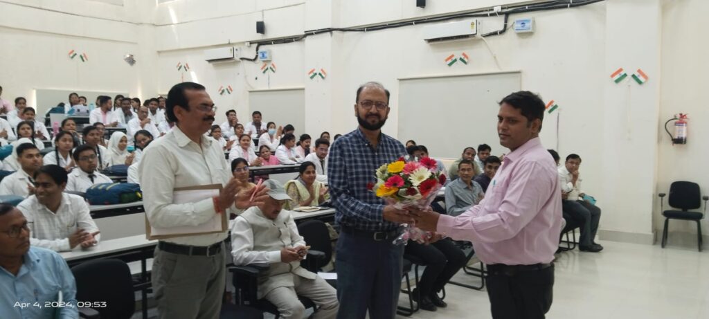 आज दिनांक 4 अप्रैल, 2024 को उमानाथ सिंह स्वशासी राज्य चिकित्सा महाविद्यालय, जौनपुर के सभागार मे “नेशनल ट्यूबरक्लोसिस इलिमिनेशन प्रोग्राम” (NTEP) के प्रशिक्षण कार्यक्रम का आयोजन मेडिकल कालेज के प्रधानाचार्य प्रो० डा० शिव कुमार एवं जिला क्षय रोग अधिकारी के दिशा निर्देश में कराया गया। कार्यक्रम का उद्घाटन प्रधानाचार्य, प्रो० डा० शिव कुमार ने अपने उद्बोधन से किया। तपश्चात मुख्य चिकित्सा अधीक्षक डा० ए०ए० जाफरी ने स्वागत भाषण दिया। डा० सच्चिदानन्द ने कार्यक्रम का विस्तृत रूप से परिचय दिया तपश्चात डा० अचल सिंह, सहायक आचार्य, टी०बी०एण्ड चेस्ट विभाग के द्वारा टी०बी० एवं डी०आर०टी०बी० की डायग्नोसिस तथा ट्रीटमेंट की गाइडलाइन्स के बारे में विस्तृत रूप से बताया। डा० विनोद कुमार, सहायक आचार्य, जनरल मेडिसिन विभाग के द्वारा टी०बी० प्रिवेन्टीव एवं एक्सट्रा पल्मोनरी टी०बी० पर प्रशिक्षित किया। डा० दीपक कुमार ने टी०बी० के सैम्पल कलेक्शन एवं ट्रान्सपोर्ट के बारे में बताया। डा० ममता, सहायक आचार्य, पीडियाट्रील्स विभाग द्वारा बच्चों में टी०बी० के लक्षण व उसके उपचार के बारे में जानकारी दी। उपजिला क्षय रोग अधिकारी, डा० दिनेश कुमार ने टी०बी० प्रोग्राम की संरचना के बारे में बताया। कार्यक्रम का संचालन डा० ममता द्वारा किया गया। इस अवसर पर समस्त संकाय सदस्य, सीनियर रेजिडेन्ट, जूनियर रेजिडेन्ट, नर्सिंग स्टॉफ, एम०बी०बी०एस० छात्र तथा टी०बी० क्लीनिक से आये रामबचन, सुशील राजीव श्री, सुरेन्द्र निषाद एवं महाविद्यालय के कर्मचारीगण उपस्थित रहे। कार्यक्रम के अंत में डा सुशील अग्रहरी ने टी०बी० मुक्त भारत 2025 का नारा (टी०बी० हारेगा, देश जीतेगा) लगाकर किया गया।