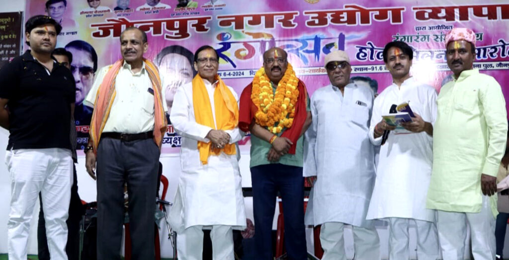 जौनपुर नगर उद्योग व्यापार मंडल द्वारा आयोजित होली मिलन समारोह नगर संरक्षक नन्हे वर्मा के नखास स्थित पैलेस गार्डन पर धूमधाम से रंगारंग संगीतमय कार्यक्रम के साथ मनाया गया,