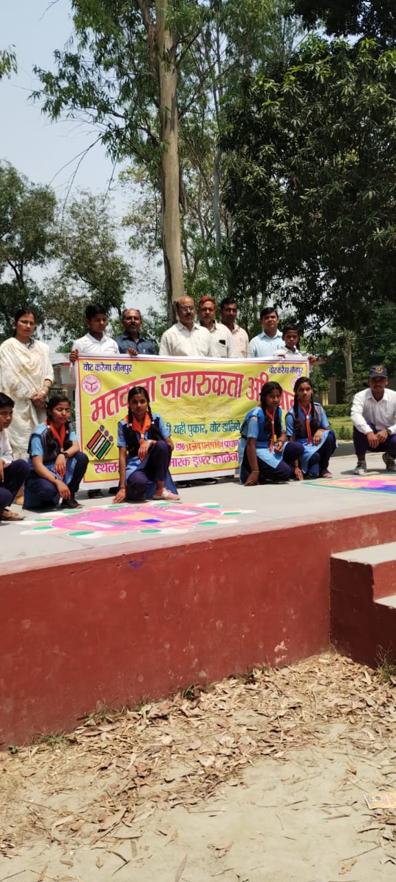 स्काउट गाइड के छात्र-छात्राओं ने रंगोली बनाकर मतदान के लिए किया जागरूक