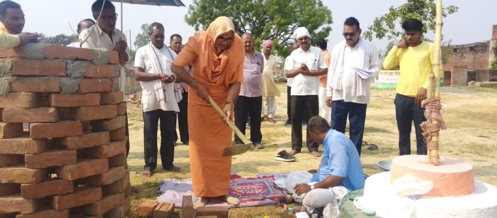 वाराणसी के संत स्वामी कृष्णानंद सरस्वती द्वारा शांति तिनिकेतन आश्रम शिवनगर,गोहका नियर दियावांनाथ महादेव मंदिर मछली शहर में महंत दुबे के आश्रम पर बन रहे भारत माता मंदिर और कक्षा 5 तक के लव, कुश, राम, लक्ष्मण, भरत, शत्रुघ्न, नाम से चलाई जाने वाली पांच कक्षाओं के लिए बन रहा भारत माता मंदिर एवं आश्रम में 120फीट ऊंचा तिरंगा ध्वज के लिए भूमि पूजन किया, स्वामी कृष्णानंद सरस्वती महंत दुबे की आग्रह पर वाराणसी से दियांवा नाथ महादेव मंदिर पहुंचकर पूजा अर्चना करते हुए शातिनिकेतन आश्रम पर कथा पाठ करके भूमि पूजन करते हुए वृक्षारोपण भी किया उन्होंने कहा की संत परंपरा से देश इस्लामिक देश बनने से देश बचा है और सनातन धर्म की रक्षा हुई है हम सब भारत भूमि पर संत महात्माओं की वाणी को ध्यान से कंठस्थ करना चाहिए और ईश्वर के प्रति आस्था रखनी चाहिए ईश्वर जो देगा वह आपके हित के लिए होगा । अन्ना ने कहा कि संतों की वाणी अमृत समान होती है जो सत्संग में पहुंचकर संतों की अमृतवाणी अमृत के समान पीता है वह निश्चित ही भारत भूमि के लिए राम, कृष्ण और महाराणा प्रताप बन सकता है । इस अवसर पर जज सिंह अन्ना,महन्थ दूबे सहित सैकड़ो लोग उपस्थित रहे ।