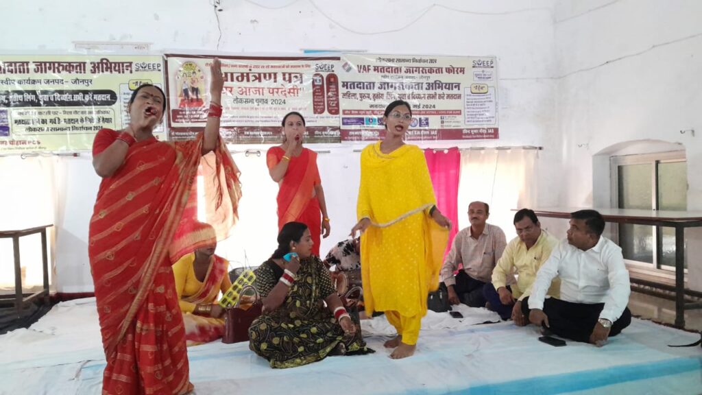 सोमवार को जनक कुमारी इन्टर कालेज में मतदाता जागरूकता कार्यक्रम आयोजित किया गया। जिसमें उक्त किन्नर टीम द्वारा अपने अन्दाज मे कई गीत गाकर व नृत्य करते हुए लोगों को मतदान करने के लिए प्रोत्साहित किया गया। गीत के बोल- घर आजा परदेसी- तेरा वोट बुलाये रे। जागो रे जागो मतदाता। ले तो आए हो हमें सपनो के गाँव में। तुम आये तो आया मुझे याद, गली में आज चांद निकला आदि गाने गाकर सभी को वोट करने हेतु प्रेरित किया।