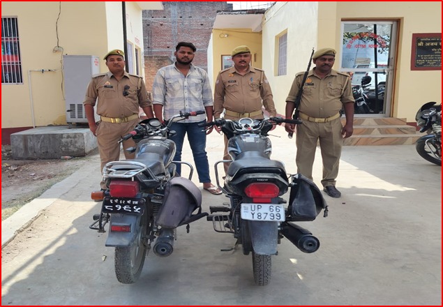मड़ियाहूँ पुलिस द्वारा चोरी की 02 मोटरसाईकिलों के साथ एक अभियुक्त को किया गया गिरफ्तार