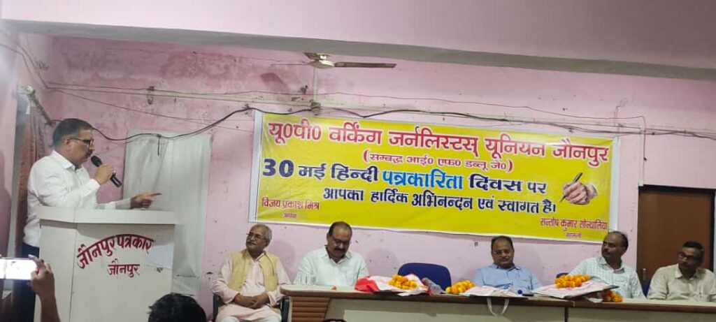 जौनपुर ।यू.पी वर्किंग जर्नलिस्ट यूनियन सम्बद्ध (आई. एफ. डब्लू. जे.)के तत्वावधान मे कलेक्ट्रेट परिसर स्थित पत्रकार भवन/सामुदायिक सभागार मे 30 मई हिंदी पत्रकारिता दिवस के अवसर पर “हिंदी पत्रकारिता की वर्तमान चुनौतियां, विषयक संगोष्ठी का आयोजन किया गया |