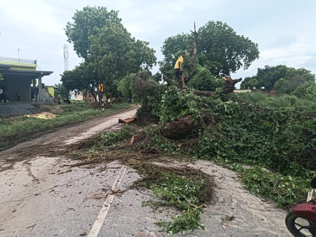 रात को हल्की बूंदाबांदी के बीच तेज हवा चल रही थी।उसी समय शीशम का ऊक्त पेड़ गिर पड़ा।वहां पर मोड़ है।एक तेज रफ्तार कार का चालक अचानक सड़क पर पेड़ गिरा देखकर इमरजेंसी ब्रेक लगाकर रोक दिया।उसी समय पीछे से आयी दूसरी कार ने उसे टक्कर मार दिया।जिससे उसके कार का अगला तथा दूसरी कार का पिछला हिस्सा क्षतिग्रस्त हो गया।हालांकि के दोनो वाहन चले गए।सूचना पर पहुंचे थानाप्रभारी जयप्रकाश यादव ने रात को आदमी लगवाकर पेड़ को सड़क से हटवाया।तब जाकर आवागमन शुरू हुआ।