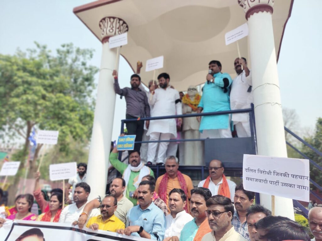 पूर्व विधायक सुरेंद्र प्रताप सिंह ने कहा, “सपा हमेशा से दलित विरोधी रही है। मुलायम सिंह यादव और अखिलेश यादव के कार्यकाल में दलितों पर अत्याचार के मामले सबसे अधिक सामने आए। अखिलेश यादव बाबा साहेब के समकक्ष तो दूर, उनके चरणों की धूल भी नहीं हैं।”
