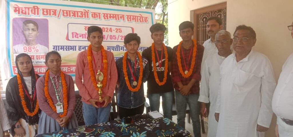 प्रतिभा शाली बच्चों में इंटर के कृष कुमार गुप्ता,एवं हाई स्कूल के आदित्य शर्मा98 प्रतिशत ,अंतरा विश्वकर्मा, आशिम बानो आदि दर्जनों बच्चों को अध्यक्षता कर रहे सदानन्द राय पूर्व भाजपा मंडल अध्यक्ष एवं मुख्य अतिथि ने उन्हें स्मृति चिन्ह देकर सम्मानित किया।