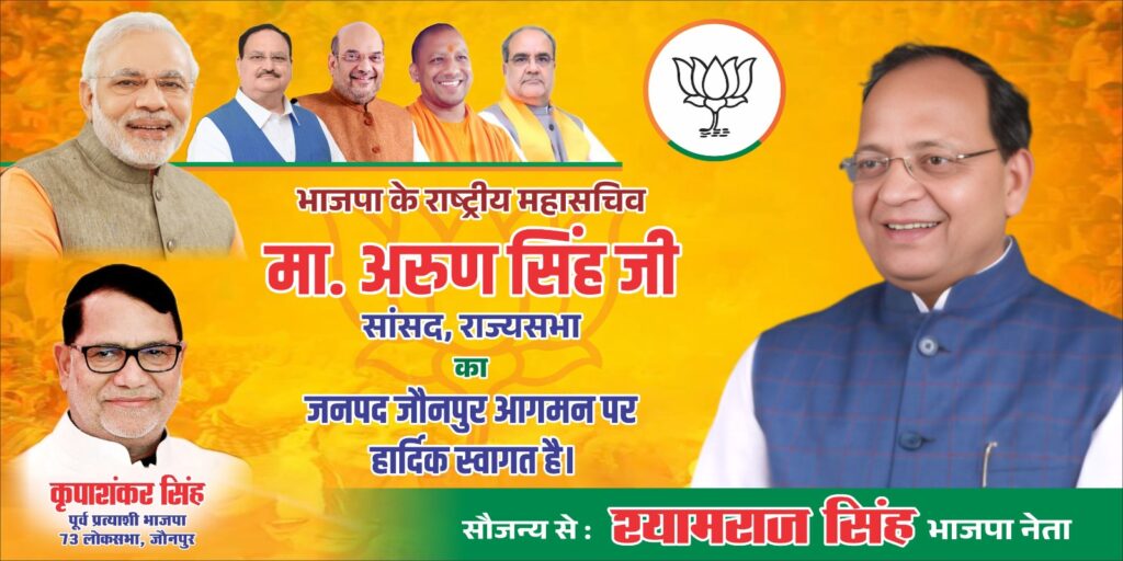 भाजपा के राष्ट्रीय महासचिव एवं राज्यसभा सांसद अरुण सिंह का जौनपुर आगमन 20 मई को