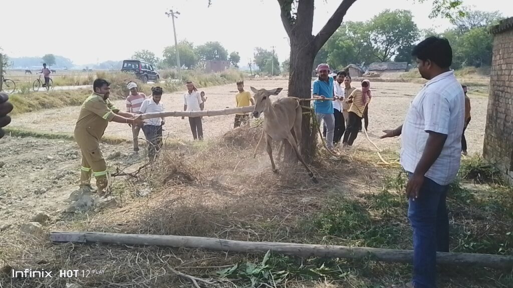 Jaunpur news कुएं में गिरे नीलगाय के बच्चे को पुलिस ने सकुशल निकाला, ग्रामीणों ने ली राहत की सांस