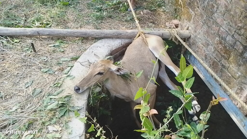 Jaunpur news जौनपुर जनपद के बरसठी ब्लॉक स्थित शाहापुर ग्राम सभा में एक ट्यूबवेल के सूखे कुएं में नीलगाय का एक बच्चा गिर गया। बताया जा रहा है कि रात के समय उछलते-कूदते हुए वह कुएं में जा गिरा। सौभाग्यवश कुएं में पानी नहीं था, जिससे कोई गंभीर चोट नहीं आई।