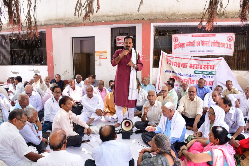 Jaunpur news वित्त विधेयक और विद्यालय मर्जर के विरोध में पेंशनर्स व शिक्षकों का प्रदर्शन, सात सूत्रीय मांगों को लेकर दिया धरना
