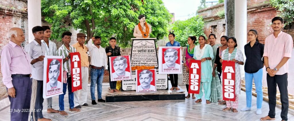 स्वतंत्रता संग्राम की गैर-समझौतावादी धारा के अग्रणी क्रांतिकारी अमर शहीद चंद्रशेखर आजाद की जयंती पर ऑल इंडिया डेमोक्रेटिक स्टूडेंट्स ऑर्गेनाइजेशन (एआईडीएसओ) द्वारा मंगलवार को नगरपालिका टाउन हॉल परिसर स्थित उनकी प्रतिमा पर श्रद्धांजलि कार्यक्रम आयोजित किया गया।
