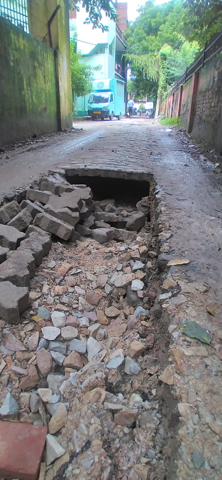 बता दें कि सीएमओ कार्यालय के पीछे मतापुर के कलावती कुंज कॉलोनी से होकर जाने वाली इंटरलॉकिंग सड़क अचानक पूरी तरह धंस गई। सड़क पर बड़े-बड़े गड्ढे हो गए । कॉलोनी के लोगों को आवागमन में परेशानियों का सामना करना पड़ा रहा है ।