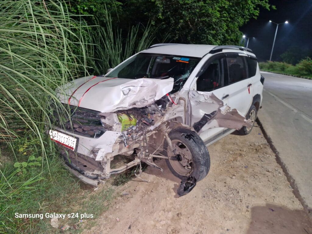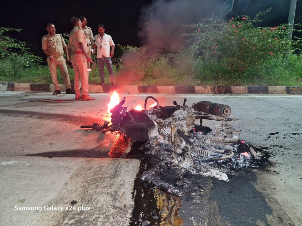 गलत साइड से आई कार से पल्सर टकराई, दो युवक गंभीर, बाइक जलकर राख