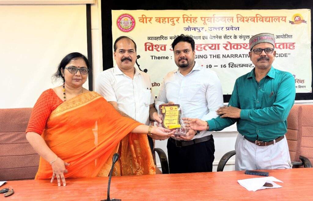 जौनपुर। वीर बहादुर सिंह पूर्वांचल विश्वविद्यालय, जौनपुर में व्यावहारिक मनोविज्ञान विभाग एवं वेलनेस सेंटर के संयुक्त तत्वावधान में संकाय भवन के कांफ्रेंस हाल में बुधवार को विश्व आत्महत्या रोकथाम दिवस मनाया गया।