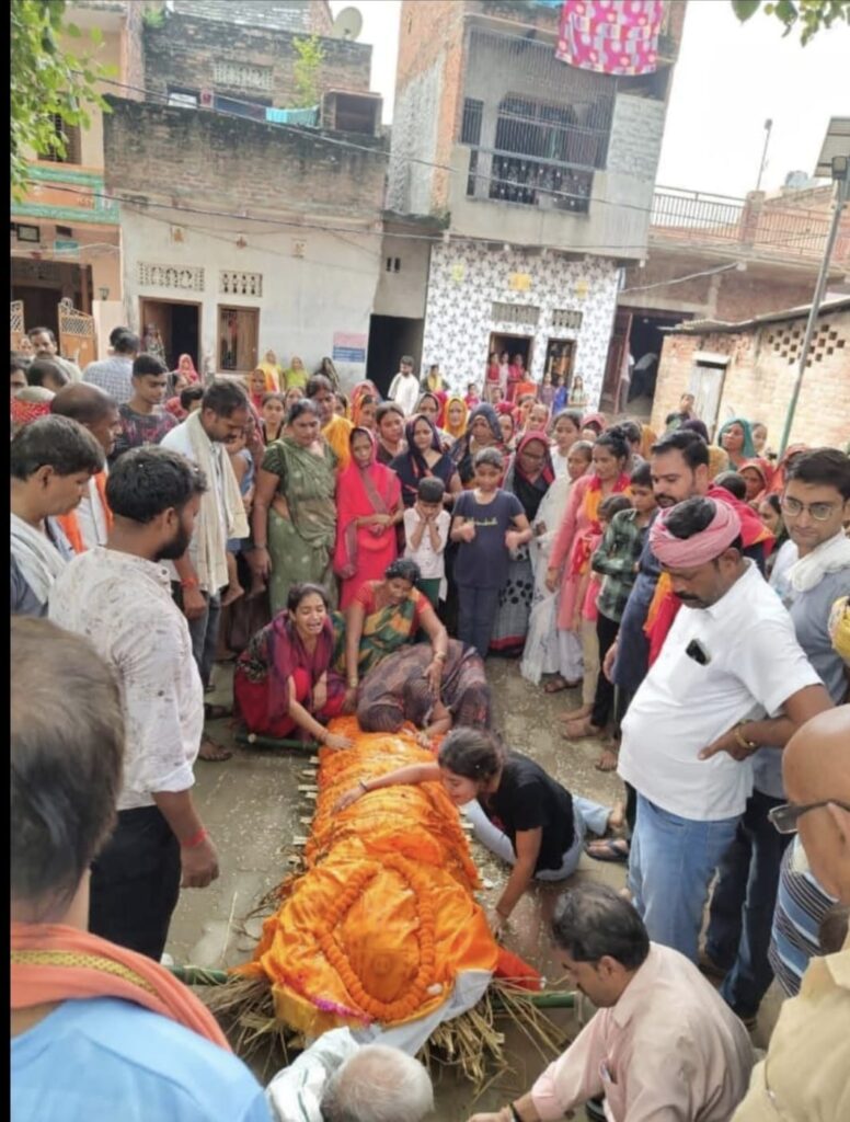सबसे छोटे भाई देवी प्रसाद पांडेय ने शव को मुखाग्नि दी।