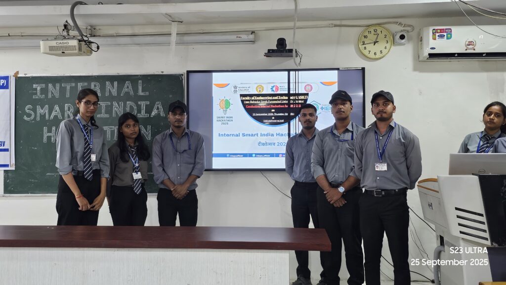 जौनपुर। वीर बहादुर सिंह पूर्वांचल विश्वविद्यालय के इंजीनियरिंग संकाय में दीक्षोत्सव–2025 के अंतर्गत आई ट्रिपल ई स्टूडेंट ब्रांच द्वारा “स्मार्ट इंडिया हैकथॉन” का आयोजन किया गया। यह कार्यक्रम इंजीनियरिंग संकायाध्यक्ष प्रो. सौरभ पाल एवं कंप्यूटर साइंस विभागाध्यक्ष डॉ. विक्रांत भटेजा के मार्गदर्शन में सम्पन्न हुआ।