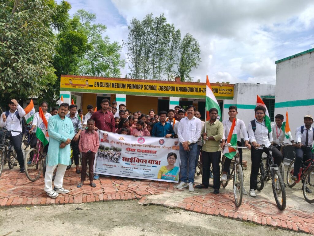 जौनपुर। वीर बहादुर सिंह पूर्वांचल विश्वविद्यालय, जौनपुर में सेवा पखवाड़ा के अंतर्गत शनिवार को “विकसित भारत@2047” विषय पर भव्य साइकिल रैली का आयोजन किया गया। विश्वविद्यालय की कुलपति प्रोफेसर वंदना सिंह ने हरी झंडी दिखाकर रैली को रवाना किया।