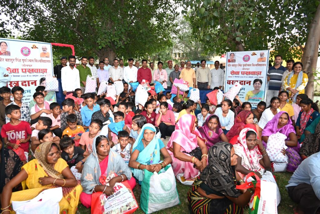 जौनपुर। वीर बहादुर सिंह पूर्वांचल विश्वविद्यालय के मुक्तांगन परिसर में बुधवार को सेवा पखवाड़ा कार्यक्रम के तहत वस्त्रदान कार्यक्रम का आयोजन किया गया। इस अवसर पर विश्वविद्यालय की कुलपति प्रो. वंदना सिंह ने स्वयं बच्चों को वस्त्र वितरित किए। बच्चों के उत्साह व खुशी को देखते हुए कुलपति ने कहा कि जब किसी जरूरतमंद को कुछ मिलता है, तो उसके चेहरे की प्रसन्नता ही हमारे लिए सबसे बड़ा पुरस्कार है।