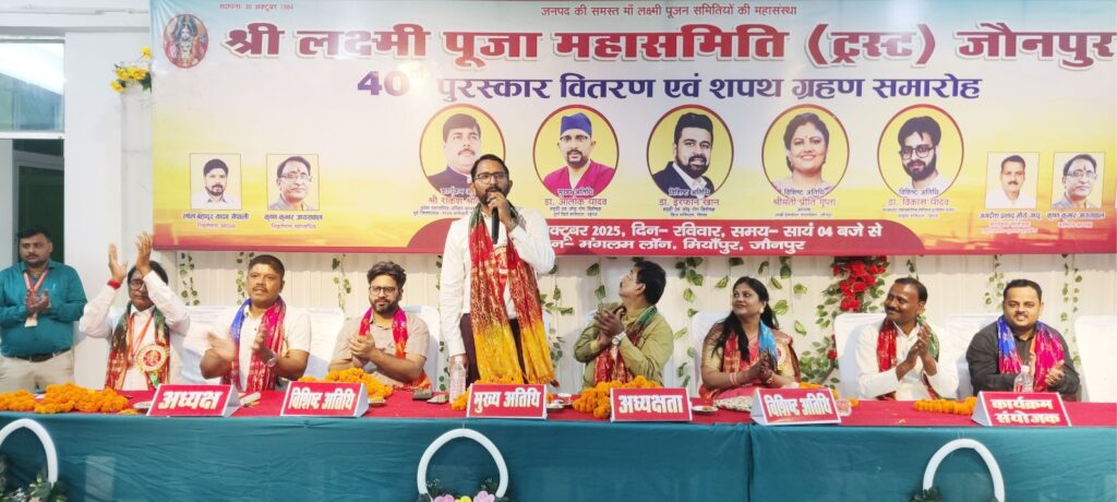 जौनपुर। मां लक्ष्मी धन की देवी हैं तो मां सरस्वती विद्या की। मनुष्य जीवन में इन दोनों की अति आवश्यकता है लेकिन सनातन धर्म के अनुसार बिना गणेश जी के सब कुछ अधूरा माना जाता है। उक्त बातें हड्डी एवं जोड़ रोग विशेषज्ञ डा. आलोक यादव ने श्री लक्ष्मी पूजा महासमिति (ट्रस्ट) के 40वें पुरस्कार वितरण एवं नवचयनित पदाधिकारियों के शपथ ग्रहण समारोह में बतौर मुख्य अतिथि कही।