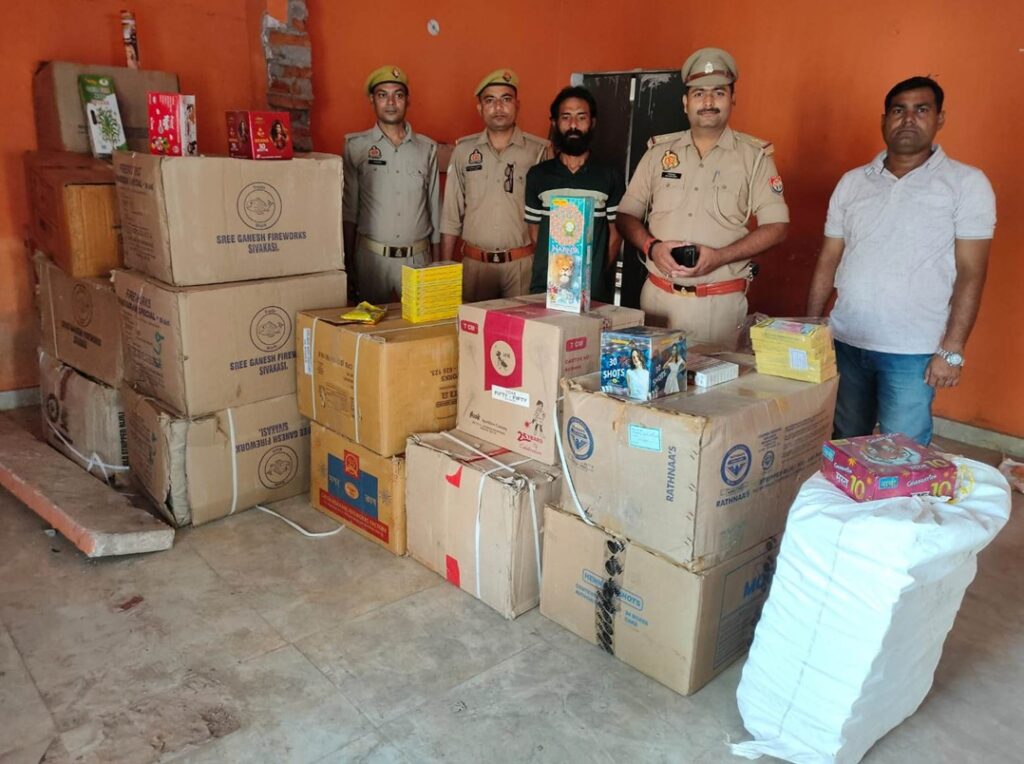 बरामद पटाखों में विभिन्न ब्रांड के सामान शामिल हैं —