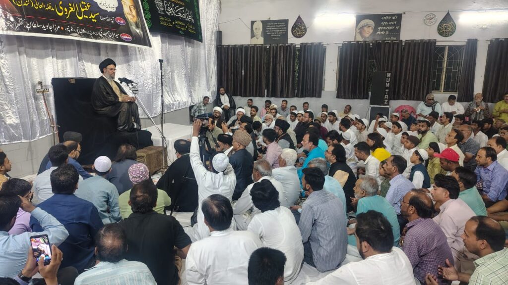 मजलिस को लंदन से पधारे विश्वविख्यात आयतुल्लाह मौलाना अकीलुल गरवी ने खिताब किया। उन्होंने अपने बयान में आपसी सौहार्द और एकता पर जोर देते हुए कहा कि “पैगंबर मोहम्मद साहब दो चीजें देकर गए हैं — एक कुरआन और दूसरा अपने अहलेबैत। जो इन दोनों को थामे रहेगा, वह कभी गुमराह नहीं होगा।”