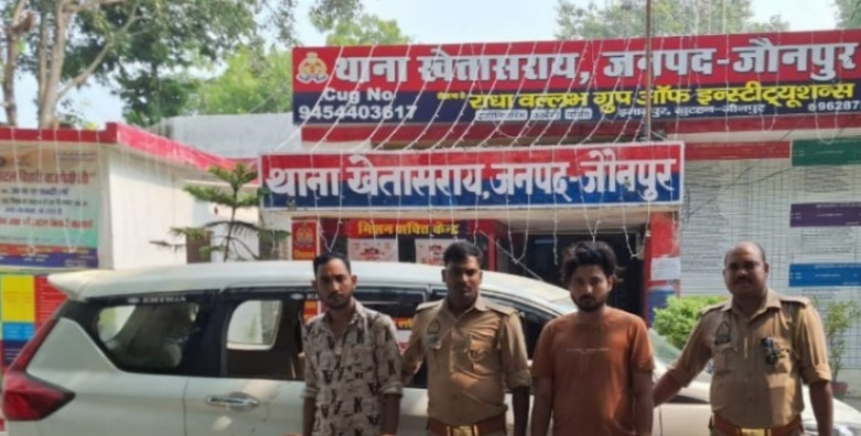 Jaunpur news खेतासराय पुलिस ने दो शातिर गो-तस्कर गिरफ्तार, कार से दो बछड़े बरामद