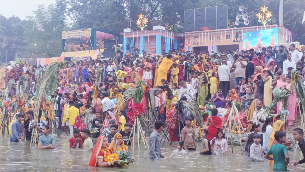 बाजे-गाजे और डीजे की धुन पर घाटों पर उमड़ी आस्था, व्रती महिलाओं ने दिया सूर्य को अर्घ्य