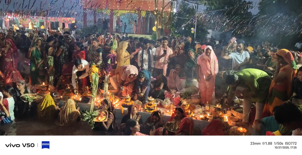 Jaunpur news डाला छठ पर व्रती महिलाओं ने डूबते सूर्य को दिया अर्ध्य