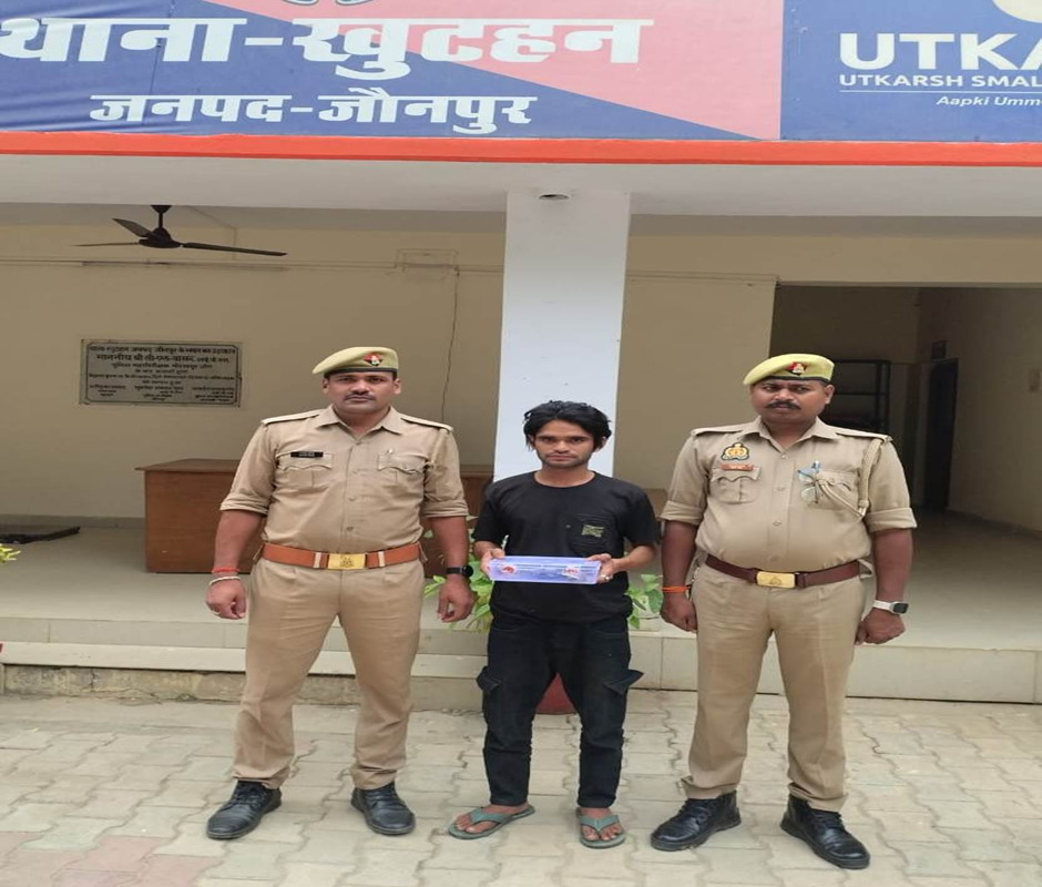 Jaunpur news खुटहन पुलिस ने एक अभियुक्त को अवैध तमंचा व कारतूस के साथ दबोचा