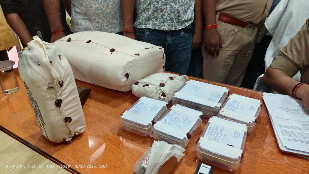 Jaunpur news पुलिस की बड़ी कार्रवाई पिता और दो पुत्र सहित 3 गिरफ्तार, घर में बन रहा था एमडीएमए; एक करोड़ की नशीली सामग्री बरामद