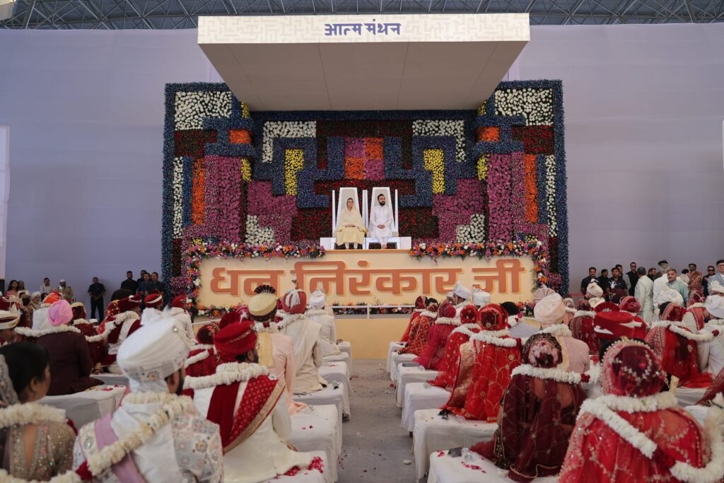 सतगुरु माता सुदीक्षा जी महाराज एवं निरंकारी राजपिता रमित जी ने सभी नवयुगलों पर पुष्पवृष्टि कर उन्हें सुख, समर्पण और प्रेम से परिपूर्ण जीवन का आशीर्वाद दिया।