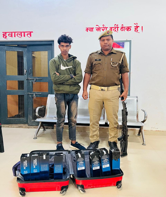 प्रभारी निरीक्षक विश्वनाथ प्रताप सिंह के नेतृत्व में टीम ने चेकिंग के दौरान रोहित कुमार पुत्र जद्दू महतो, निवासी चांदपुरा चक मकरन्द, थाना बिद्दूपुर, जनपद वैशाली (बिहार) को पकड़ा। आरोपी के पास से पैक शुदा मार्का AFTERDARK BLUE RAREGRAIN WHISKY की 8 बोतलें (कुल 6 लीटर) बरामद की गईं।